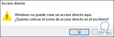 Confirma el proceso dando clic en Si para enviar el acceso directo al escritorio en Windows 10: