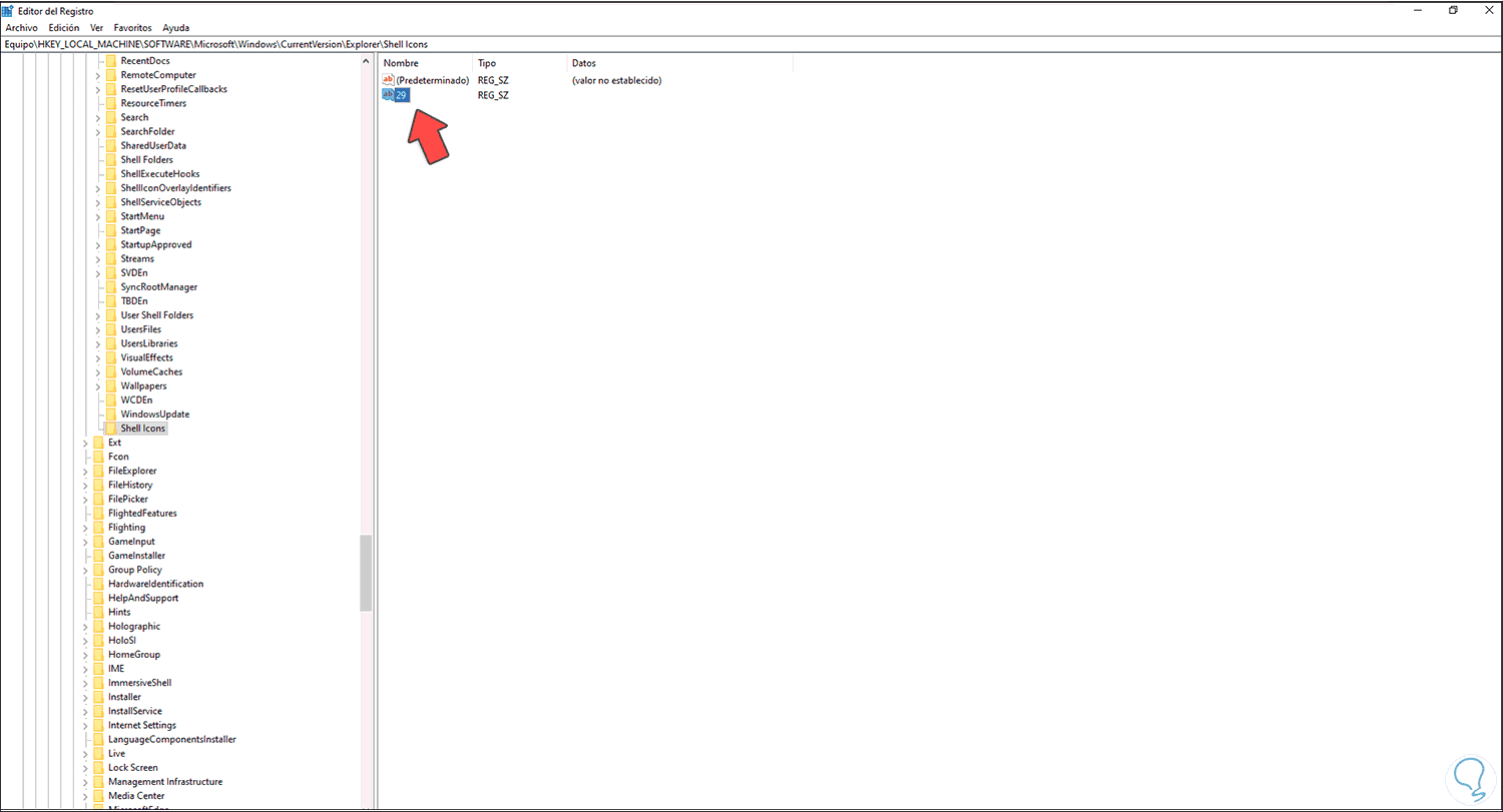 Esta clave la llamaremos con el nombre "Shell Icons":