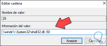 Damos doble clic sobre este valor de cadena y en el campo "Información del valor" ingresamos lo siguiente. Aplica los cambios.