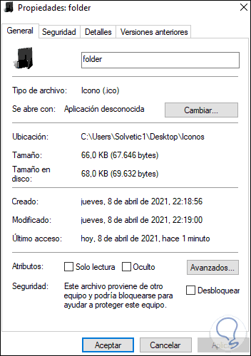 El nuevo icono será aplicado a la carpeta creada anteriormente: