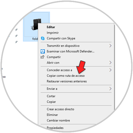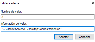 Damos doble clic sobre el valor 3 para editar su valor, pero vamos en la carpeta donde está el archivo, usamos la tecla Shift + clic derecho sobre el archivo .ico y seleccionamos la opción "Copiar como ruta de acceso":