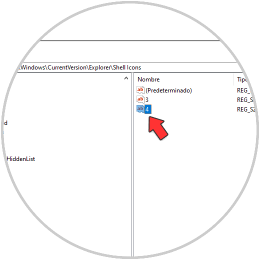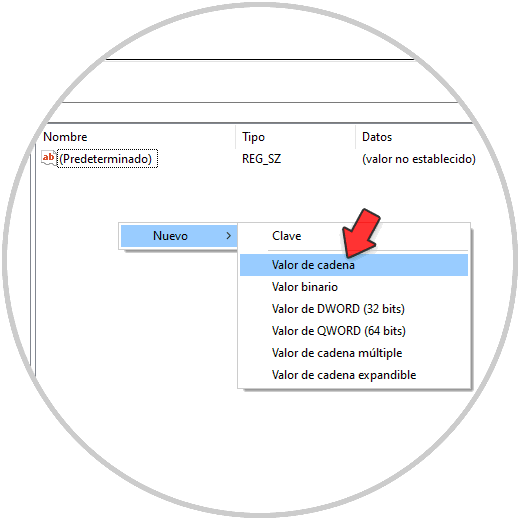 De nuevo damos clic derecho y seleccionamos "Nuevo - Valor de cadena" y asignamos el nombre 4, aplicamos los cambios:
