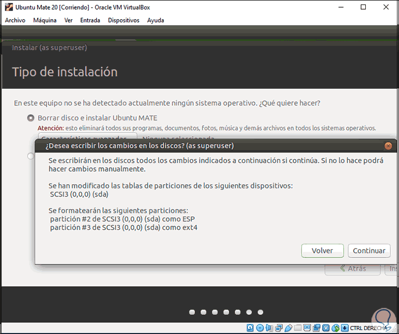 - Permitir que Ubuntu MATE realice el proceso de particionado de forma automática