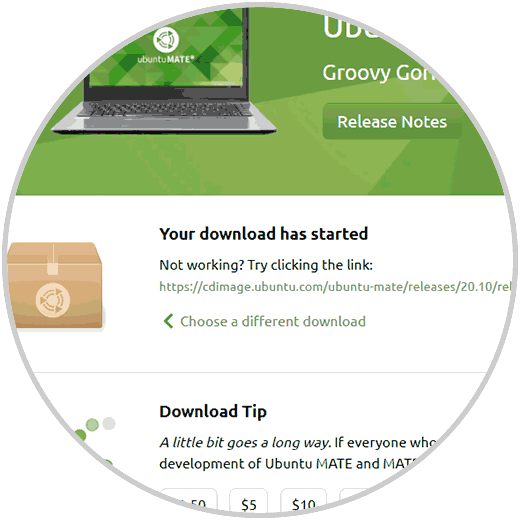 Para este caso será la opción “Direct Download”, luego de esto ya estamos en la posibilidad de descargar Ubuntu MATE 20.10: