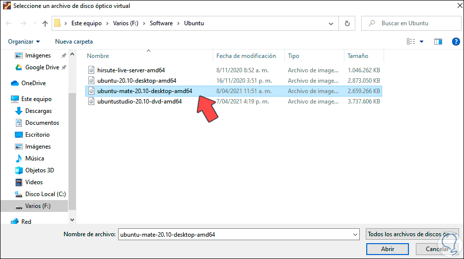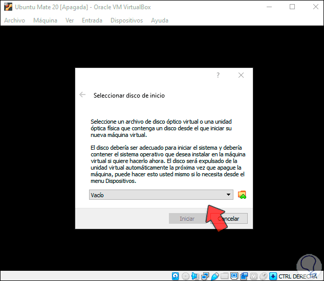 Damos clic en Examinar y seleccionamos la imagen ISO de Ubuntu Mate 20.10: