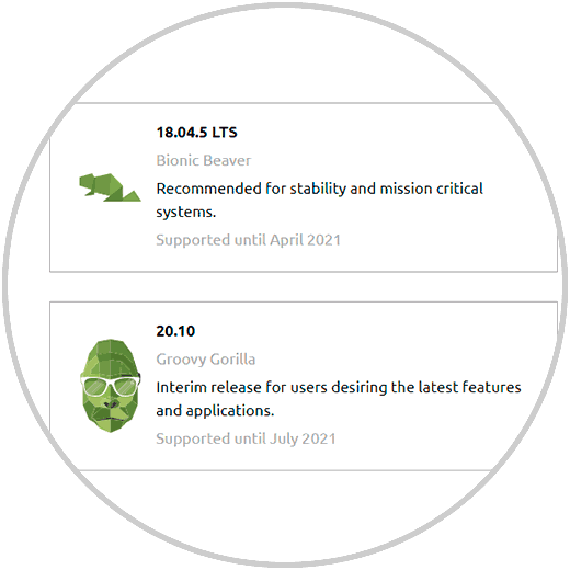 Allí damos clic sobre la edición que vamos a descargar, en este caso será 20.10, después de esto seleccionamos el método de descarga: