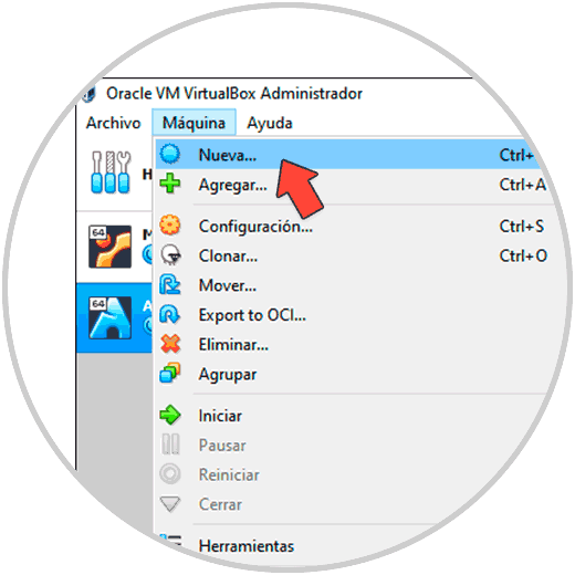 Después de la descarga, abrimos VirtualBox y creamos la máquina virtual usando alguna de las siguientes opciones: