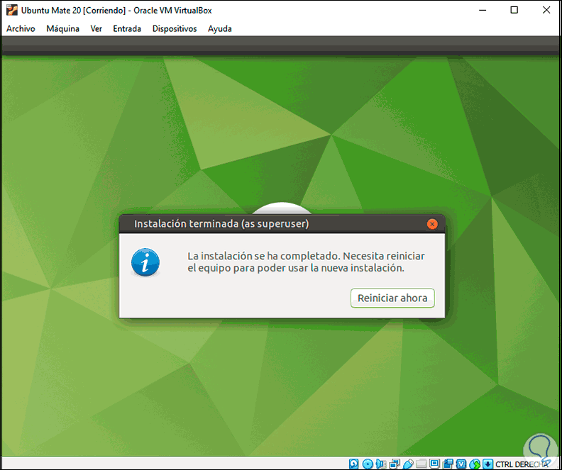 Cerramos la ventana y reiniciamos el sistema para iniciar sesión:
