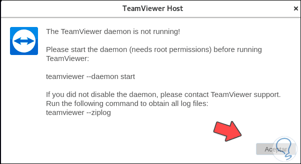 Para ello vamos a la terminal y allí ejecutamos "teamviewer --daemon start":