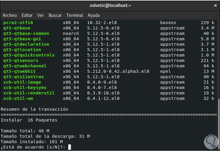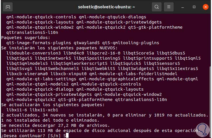 Al ingresar la letra S se procederá con la descarga e instalación: