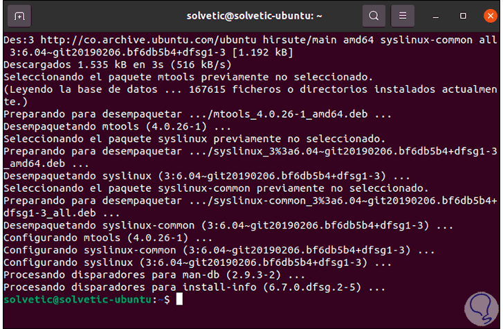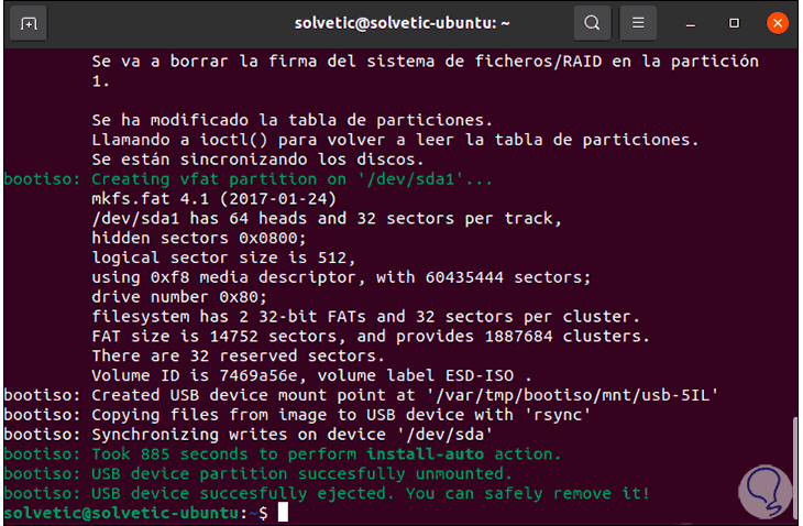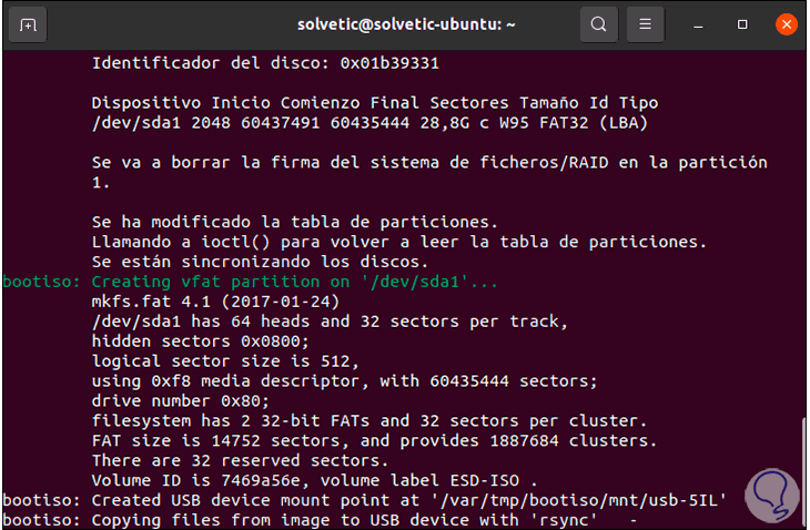 Podemos ver que el proceso ha sido completado de forma correcta, en el USB se crearán los archivos de arranque necesarios: