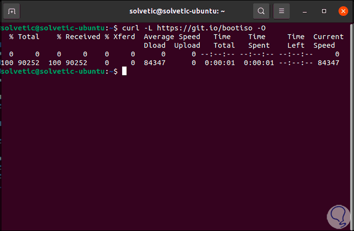 Accedemos a la terminal y allí ejecutamos "curl -L -O" para descargar la herramienta: