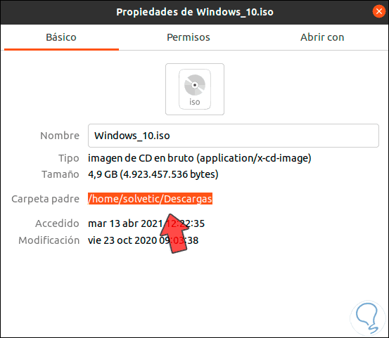 En la ventana emergente copiamos la ruta de origen y nombre de la imagen ISO: