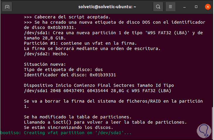 Una vez el proceso finalice veremos que se ha creado con el sistema de archivos definido: