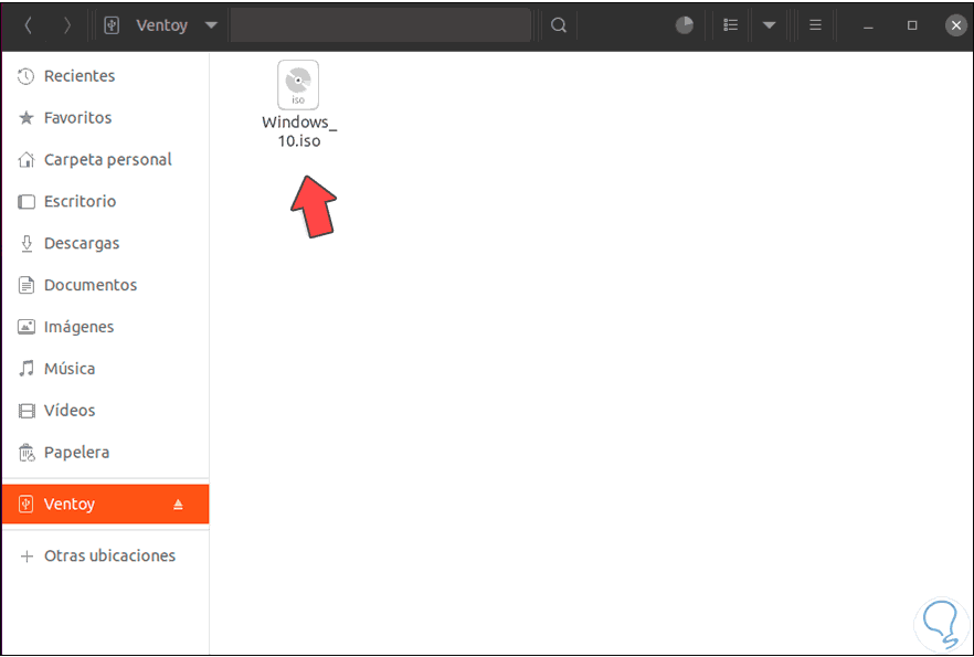 El último paso es copiar la ISO de Windows 10 a el USB Ventoy: