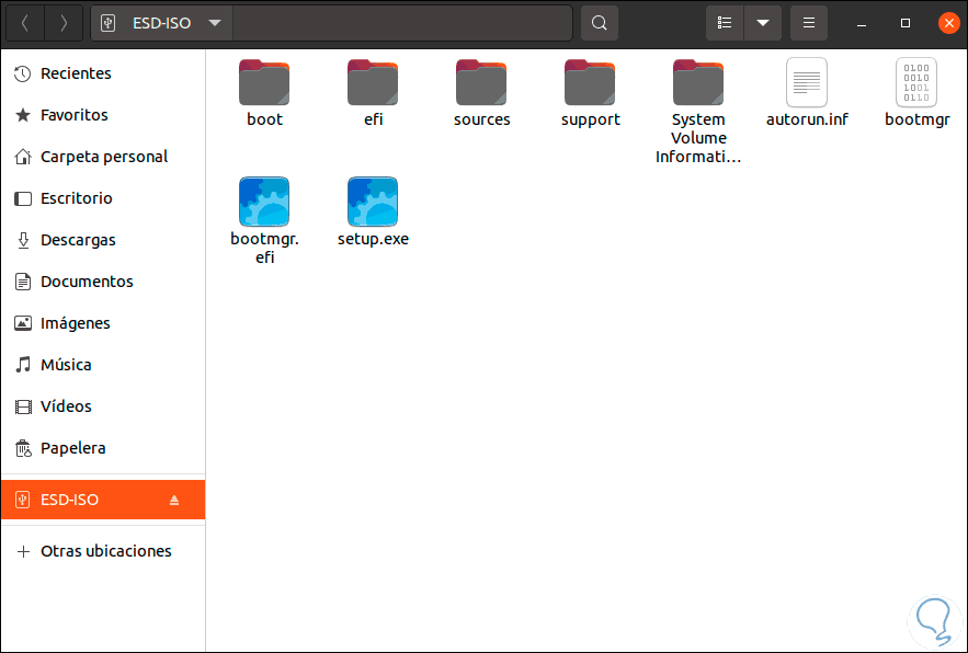 Este proceso expulsará el USB de forma automática, conectamos el USB y al acceder observamos los archivos para instalar Windows 10 desde allí. Estamos listos para usar esta USB y desde ella instalar Windows 10.