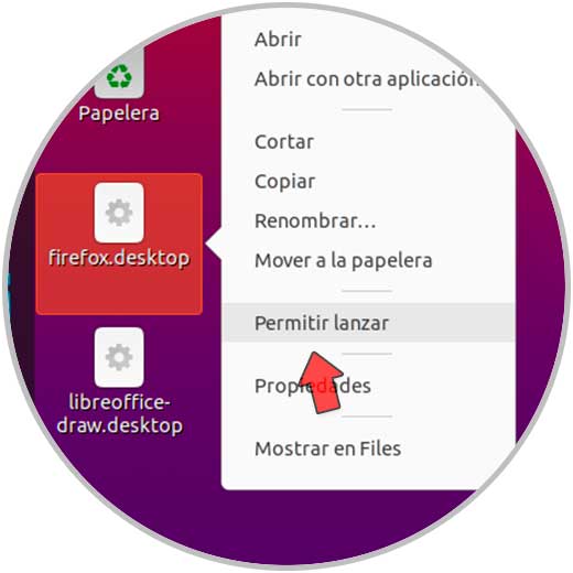 Para editarlos y completar el proceso, damos clic derecho sobre cada acceso directo y en las opciones desplegadas seleccionamos "Permitir lanzar":