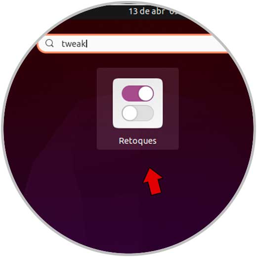 Después de esto accedemos a Gnome Tweaks (Retoques) desde el buscador de Ubuntu: