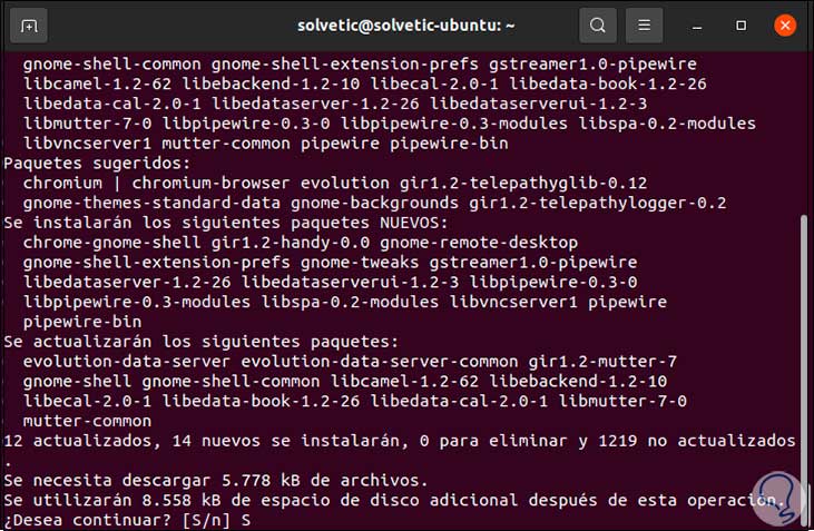 Aplicamos los cambios ingresando la letra S:, esperamos que el proceso llegue a su final: