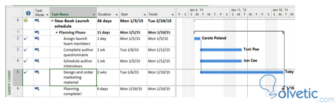 2- Luego debemos seleccionar una tarea al hacer click sobre la celda correspondiente a la columna de nombre de la tarea.