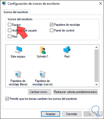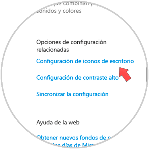 En esta ventana damos clic en la línea "Configuración de iconos de escritorio" ubicada en la parte lateral derecha, será desplegada la siguiente ventana: