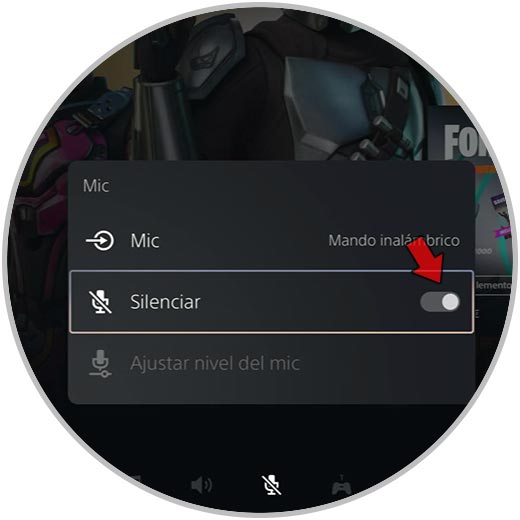 Aquí Podemos silenciar o no el micrófono del mando PS5 pulsando en el interruptor que se muestra.