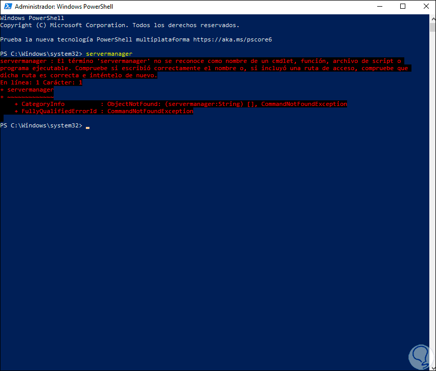 Después de esto, es posible ejecutar de nuevo "servermanager" en PowerShell: