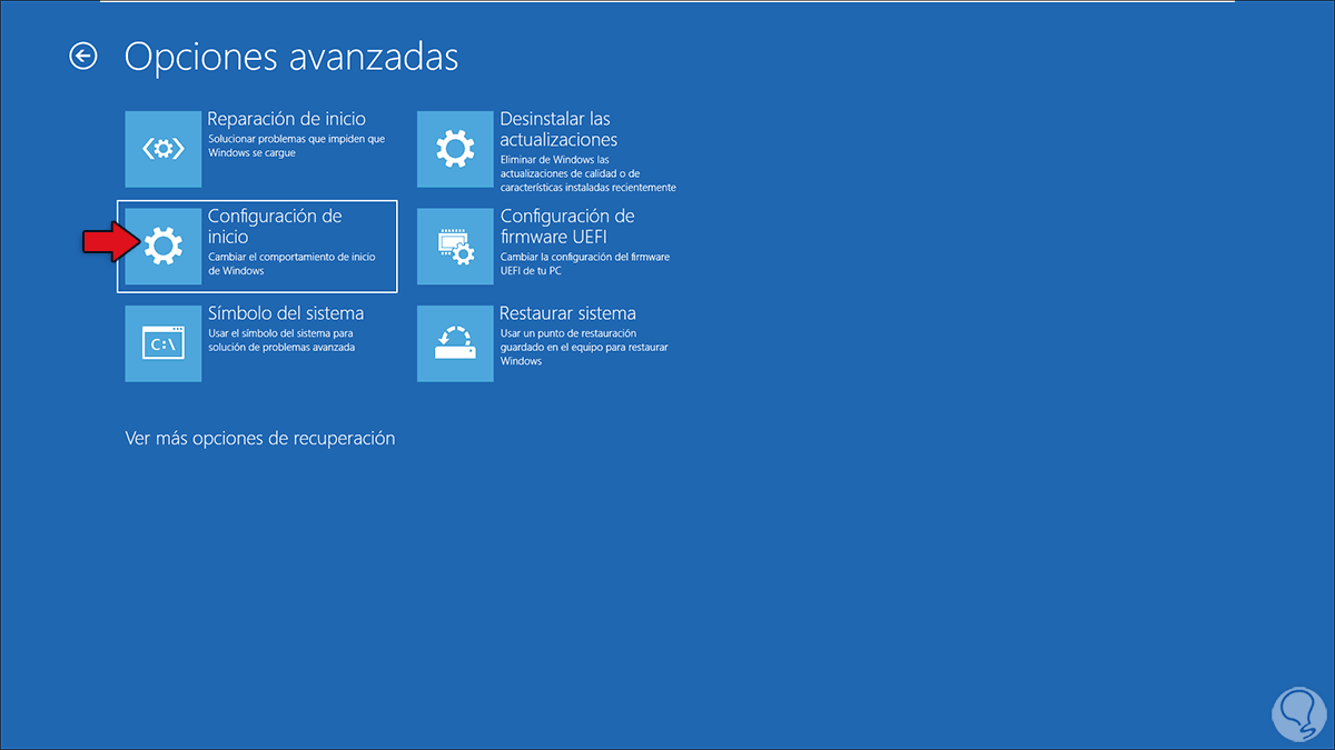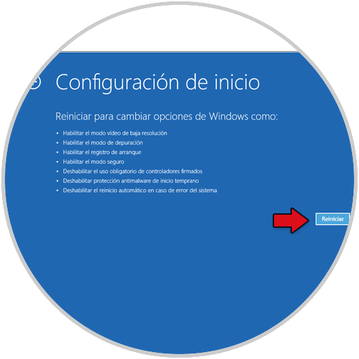 Posterior a esto veremos lo siguiente. Estas son las opciones con las cuales es posible iniciar el sistema, allí damos clic en "Reiniciar"