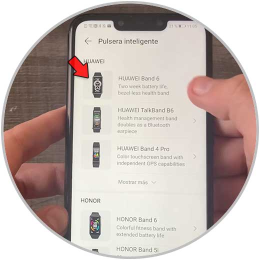 Ahora debes buscar tu modelo de pulsera. En este caso Huawei Band 6