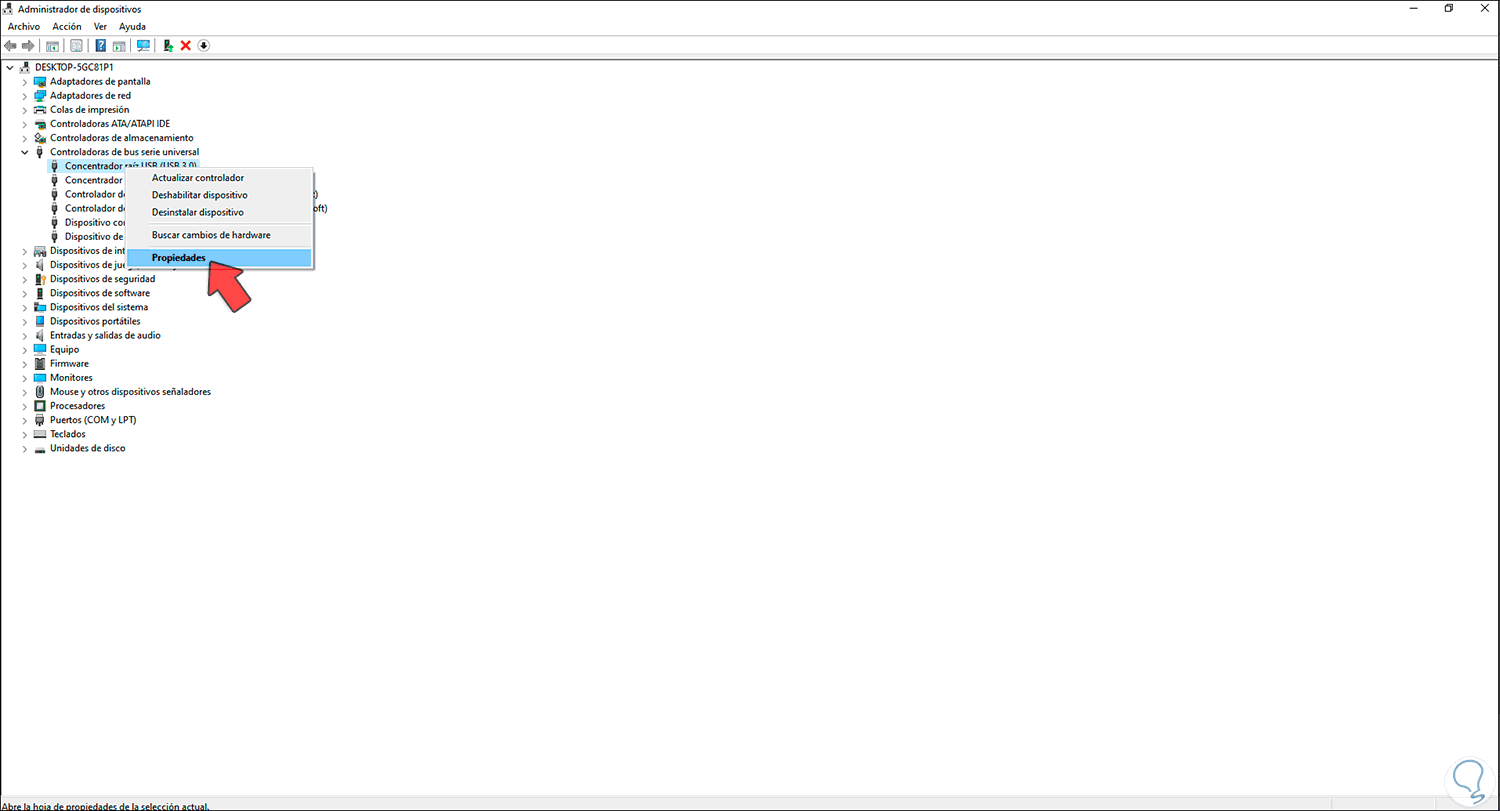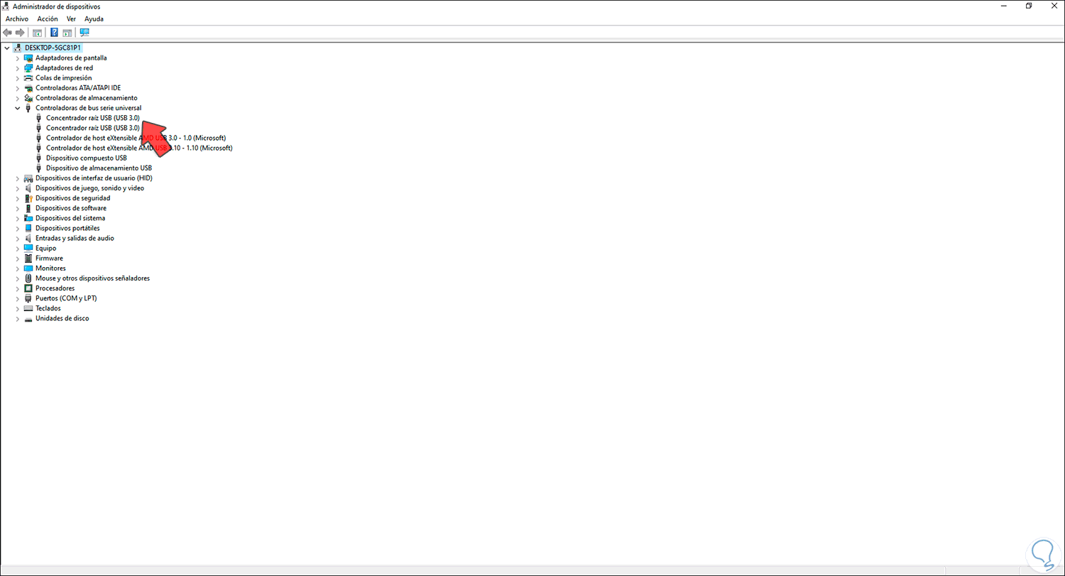 1. Ver potencia USB Windows 10 desde Administrador de dispositivos