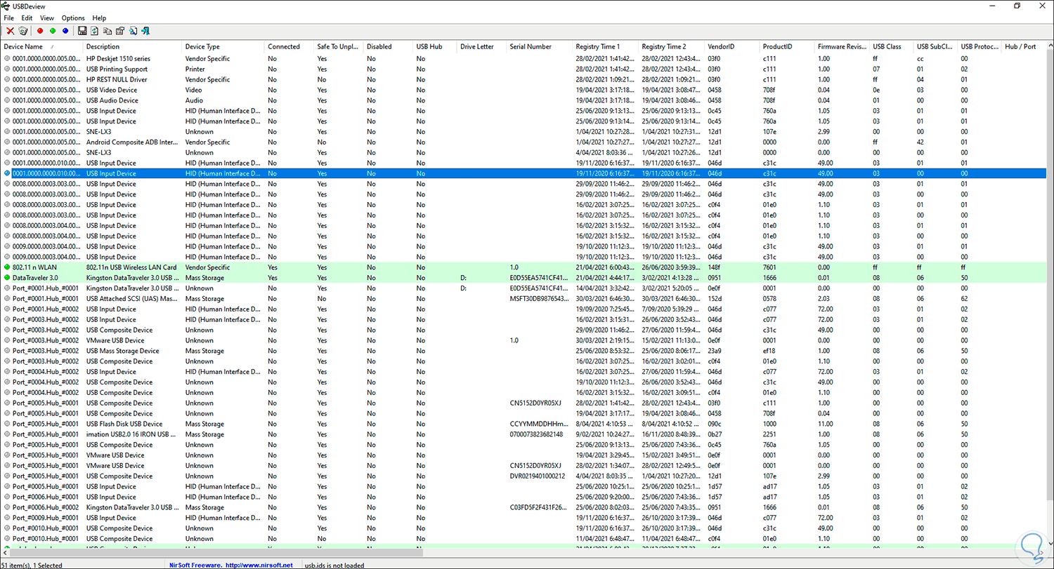 El siguiente método será usando la aplicación gratuita USBDeview la cual encuentras gratuitamente en diversos sitios web. Esta es una aplicación con la cual se accede a detalles completos de los dispositivos USB.