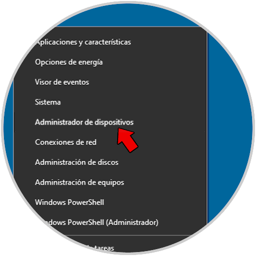 El primer método a revisar será desde el Administrador de dispositivos, para ello damos Clic derecho en el menú Inicio y seleccionamos "Administrador de dispositivos":