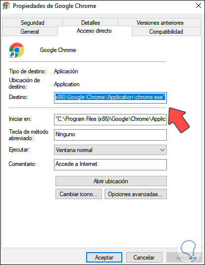 Clic derecho en el acceso directo y seleccionamos Propiedades: