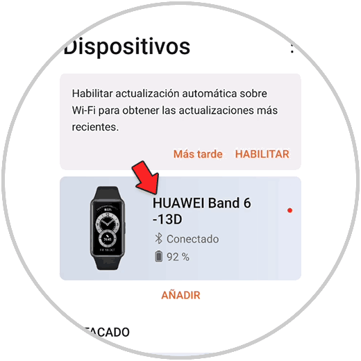 Ahora debes entrar en la app de salud y acceder a la pestaña de "Dispositivos" y entrar dentro de la Huawei Band 6.