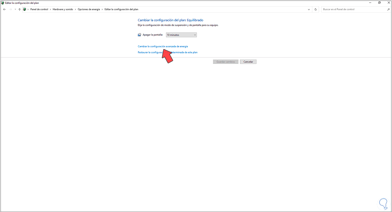 Damos clic en "Cambiar la configuración del plan" y se desplegará lo siguiente:
