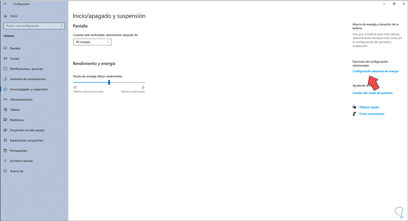 Damos clic en "Configuración adicional de energía" y se desplegará lo siguiente: