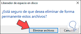 Damos clic en "Liberar espacio" y en la ventana emergente seleccionamos las opciones deseadas incluyendo "Archivos temporales":