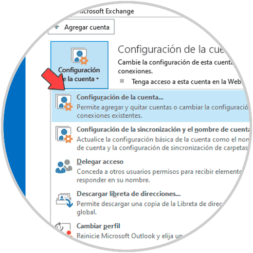 Por defecto, Outlook desplegara el calendario de la cuenta que está establecida como predeterminada, esto es posible cambiar y establecer una nueva cuenta y por ende su calendario asociado, para ello vamos a "Archivo - Configuración de la cuenta - Configuración de la cuenta":