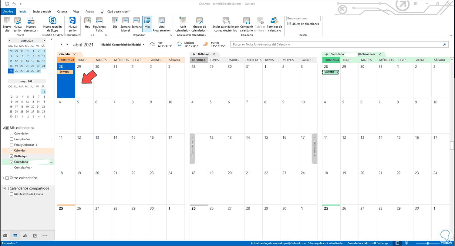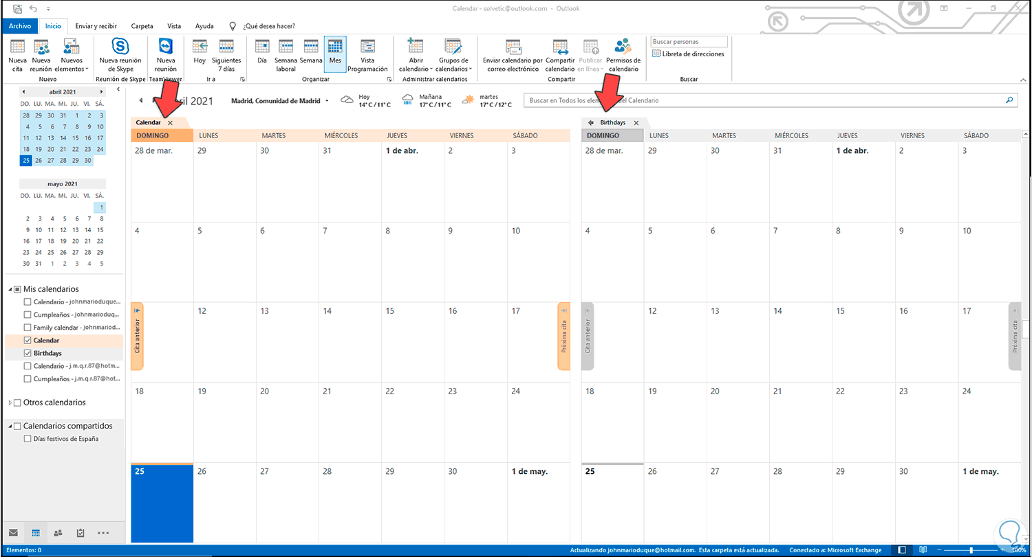 Adicional a esto, Outlook nos permite mover eventos entre los calendarios si es el caso, Solvetic explicará los pasos para gestionar los calendarios en Outlook 2016 / 2019.