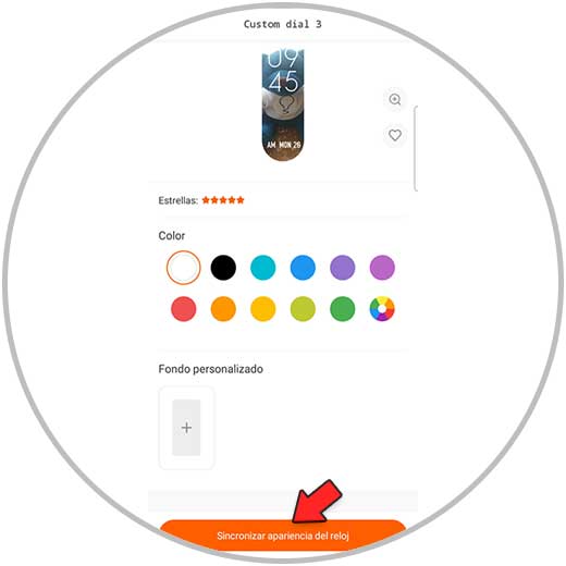 Lo siguiente será una vez ajustada la imagen, pulsar sobre "Sincronizar apariencia del reloj"