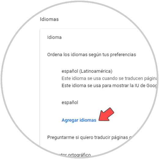 Ahora vamos a la sección Idioma y allí damos clic en "Agregar idiomas":
