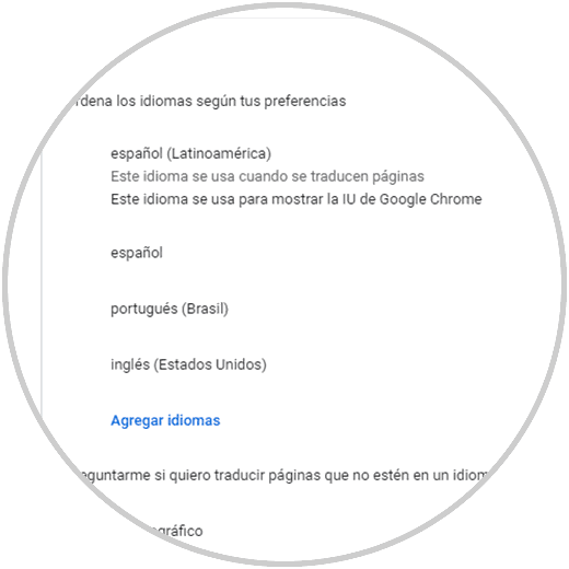Seleccionamos el o los idiomas deseados para usar en Chrome: