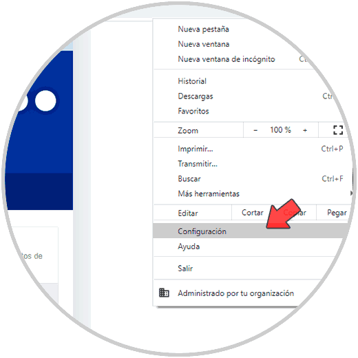Para lograr esto abrimos Google Chrome y vamos a la ruta "Personaliza y controla Google Chome - Configuración":