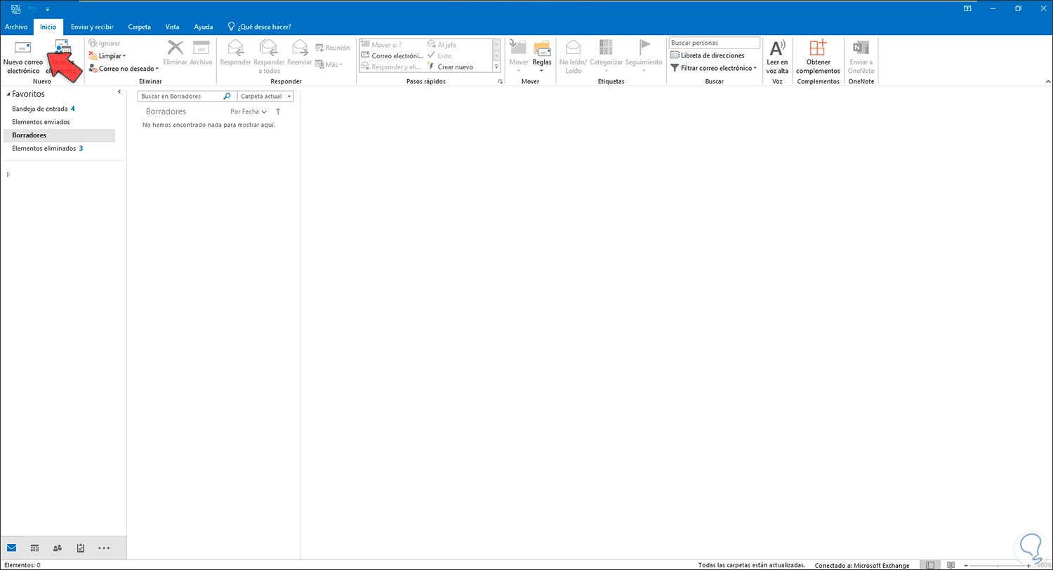 Para esto, abrimos Outlook y veremos lo siguiente: