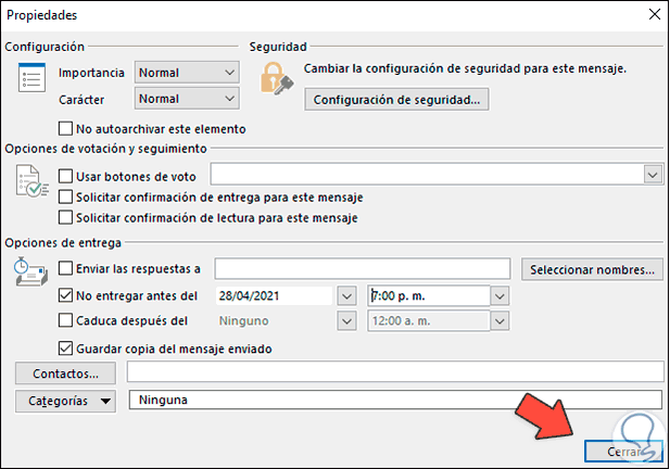 Damos clic en Cerrar para aplicar los cambios. Redactamos el correo y damos clic en Enviar.
