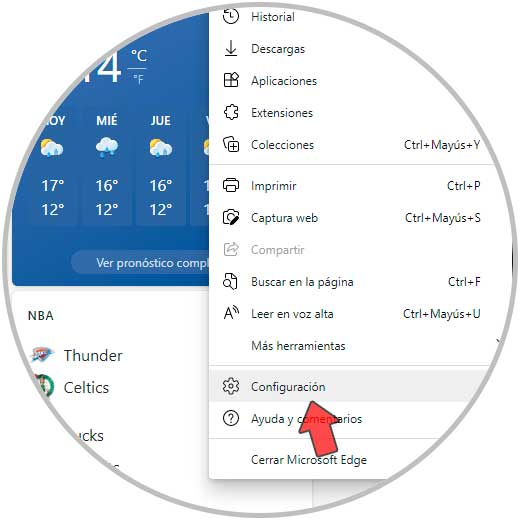 Finalmente es posible ver o no la barra de tareas desde Configuración, para ello damos clic en "Configuración y más - Configuración":