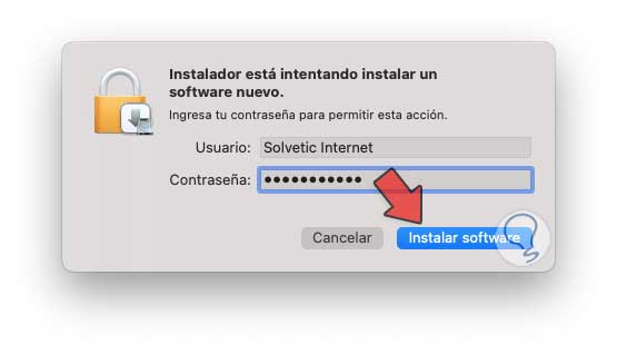 Damos clic en “Instalar” y será necesario ingresar la contraseña de administrador: