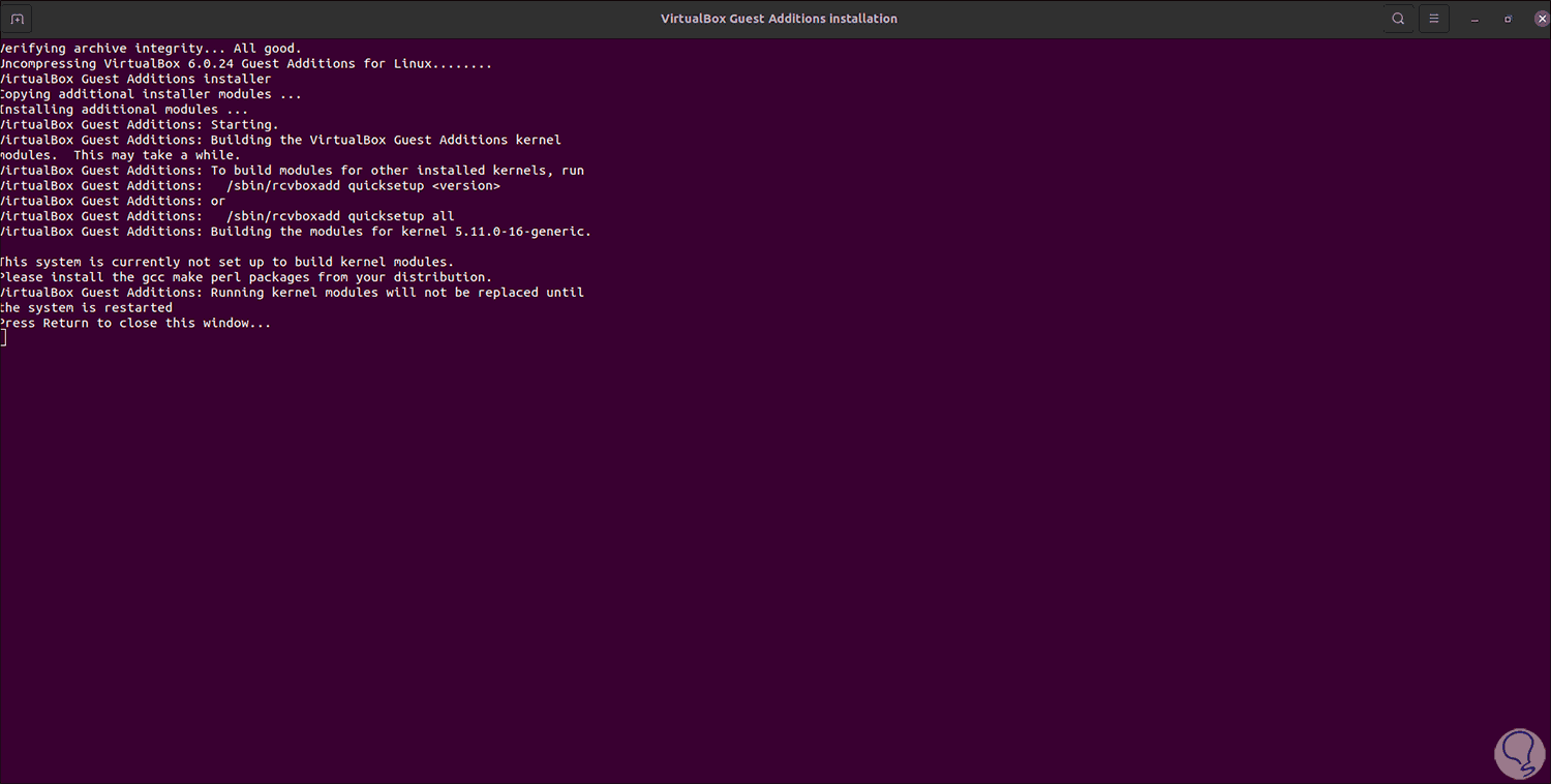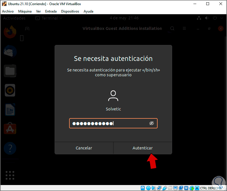 Esto abrirá la terminal para continuar con la instalación de las Guest Additions de VirtualBox: