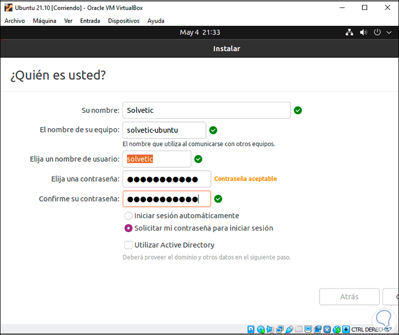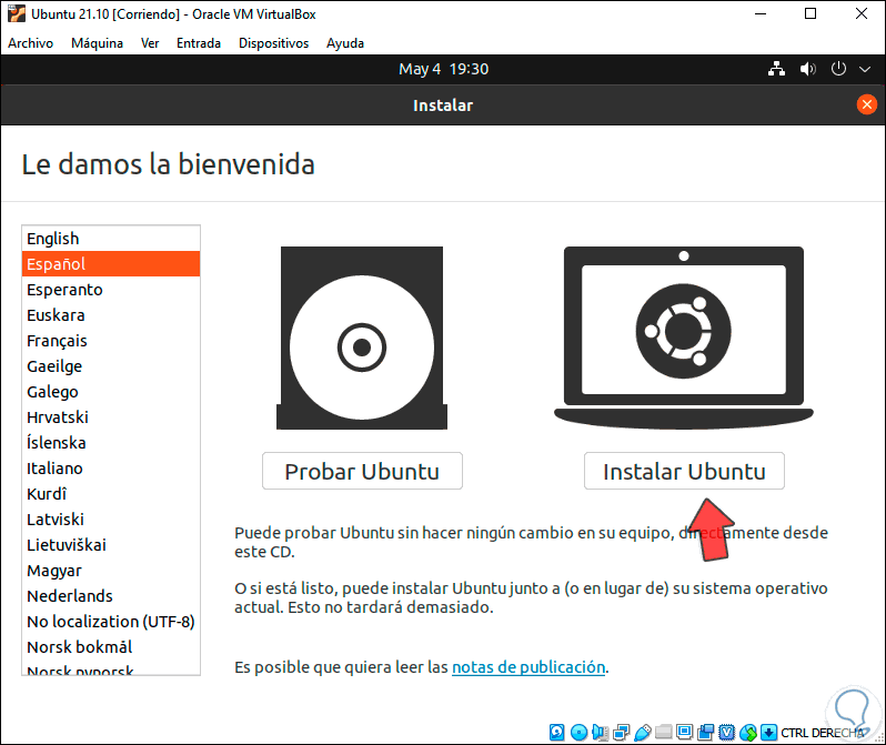 Así es la forma como podemos instalar Ubuntu 21.10 en VirtualBox.
