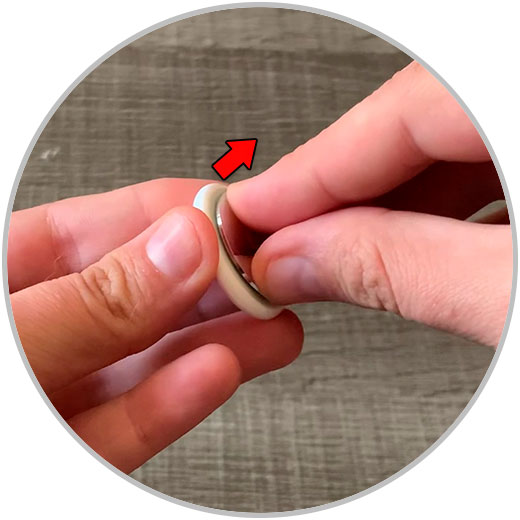 Da la vuelta al AirTag y en la parte posterior encontrarás una tapa, presiónala y gira a la izquierda.